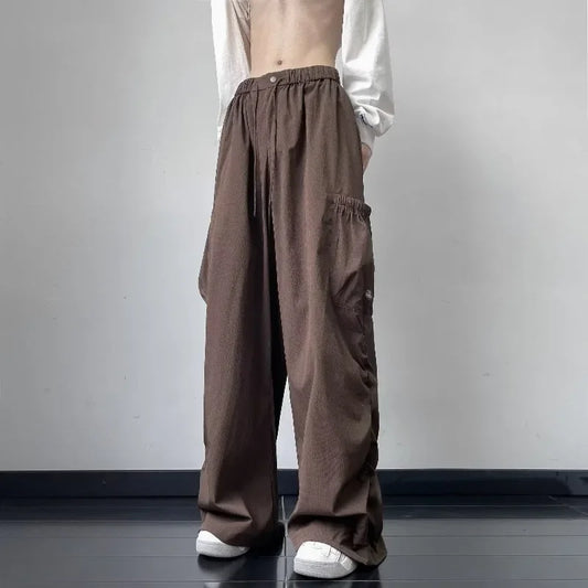 saferido Japanese Casual Loose Pocket Trendy Drawstring Ankle Tie Workwear Pants Versatile Wide Leg Mop Pants Spring Autumn New Style