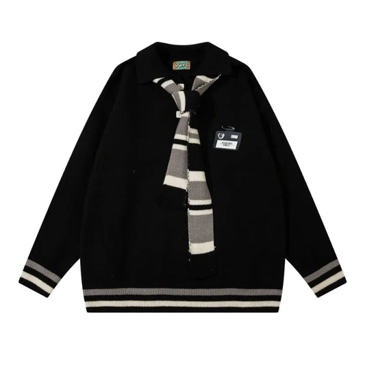saferido Japanese Style Fresh Polo Men Sweater Student Couple Knit Sweater Pullover 2023 Harajuku Winter College Style Top Mens Clothes