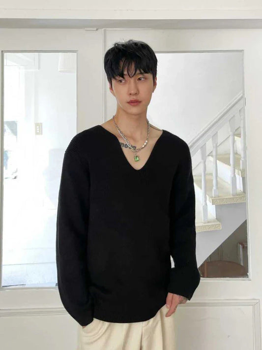 saferido Knitted Sweaters for Men Plain Man Clothes Black Loose Solid Color Pullovers V Neck S Knitwears Plus Size Korean Style Baggy A X
