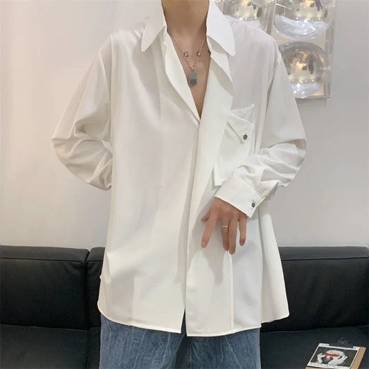saferido Korean Streetwear Spring Color New Style Personalized Men's Suit Stand Collar Diagonal Button Long Sleeve Shirt Male