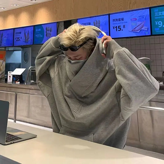 saferido Korean Street Style Solid Color High Collar Oversized Hoodie Men Fashion Loose Casual Hooded Top Harajuku New Sweatshirt Hoodie
