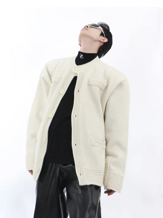 Autumn Cardigan Men Solid Baggy All-match Pockets Knitted Hip Hop Single Breasted Chic Japanese Style Advanced Handsome Harajuku