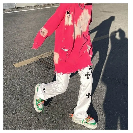 saferido Korean style Retro Worn-out Sweater For Men With Of Design Clip Loose Fit Trendy Winter Streetwear Knitwear Fashion