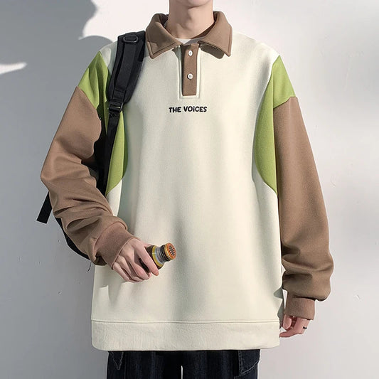 saferido Korean Version of The Lapel Sweatshirt College Style Splicing Collision Long-sleeved Sweatshirt Letters Printed Couple Sweater