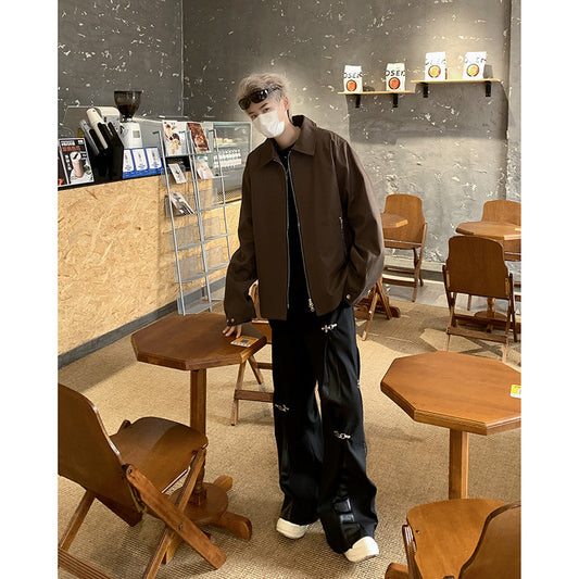 saferido men fall outfits casual Japanese Retro Oversize Lapel Jacket Men's Outer Wear Spring and Autumn Hong Kong Style Loose Workwear Flight Jacket