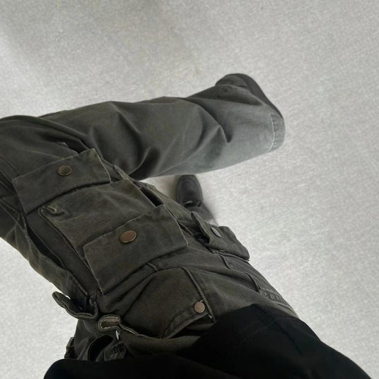 saferido masc outfits American-Style Three-Dimensional Multi-Pocket Casual Pants Men's Straight Micro-Pull Cleanfit Pants Vibe Washed Overalls Long Pants