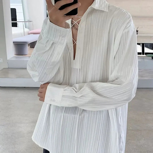saferido Men Shirts Bandage Turn-down Delicate Commuting Long Sleeve Spring Temperament Tender All-match Simple Korean Style Tops Cozy