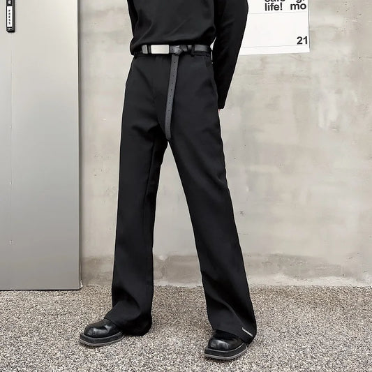 saferido Men Suit Pants Casual Korean Style Contrast Color Belt Design Simple Fashion Wide Legs Male Trousers 2024 New Stylish