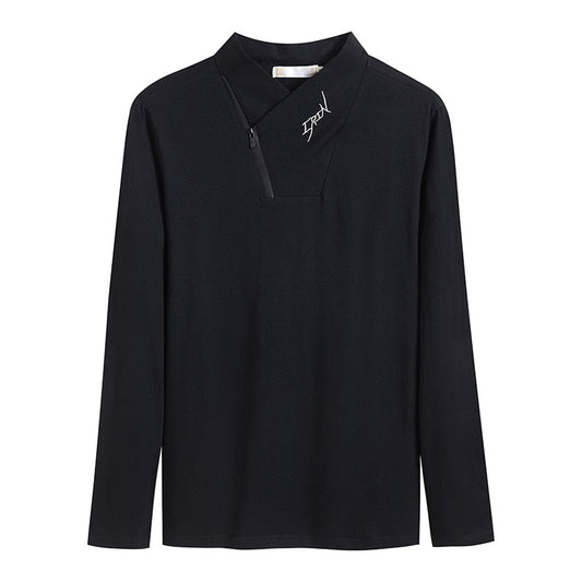 Brand New Style Cotton Men's T-shirt Long Sleeve T Shirt Men Solid Color Zipper Print Collar Oversized T Shirt