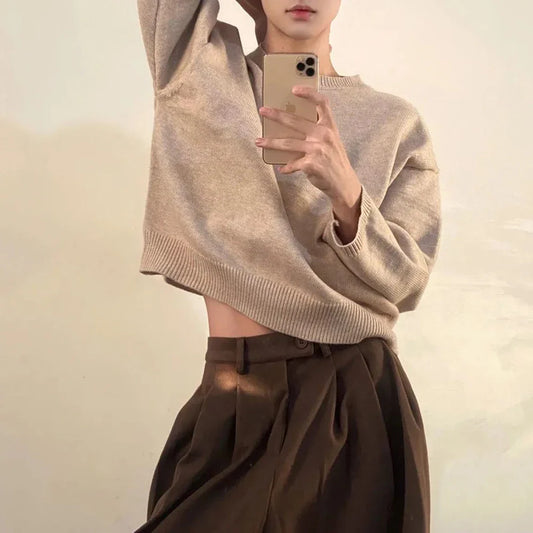saferido Mens Autumn Japanese Lazy Style Sweater 2024 New Essential Round Neck Loose Casual Simple Solid Color Long-Sleeve Sweater For Men