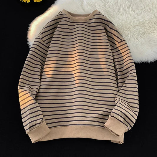 saferido Men's Tri-color Striped Sweatshirt American Classic Style Retro Casual Round Neck Top Unisex College Style Trendy Menswear