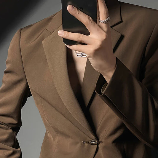 saferido Mens autumn British style retro metal buckle suit suit elegant slim, business temperament light luxury casual suit and trousers