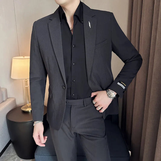 saferido New (Blazer+ Trousers) Men's Gentleman Fashion Business Suits Solid Color Korean Style Wedding Work Suit 2 Piece Set Tuxedo