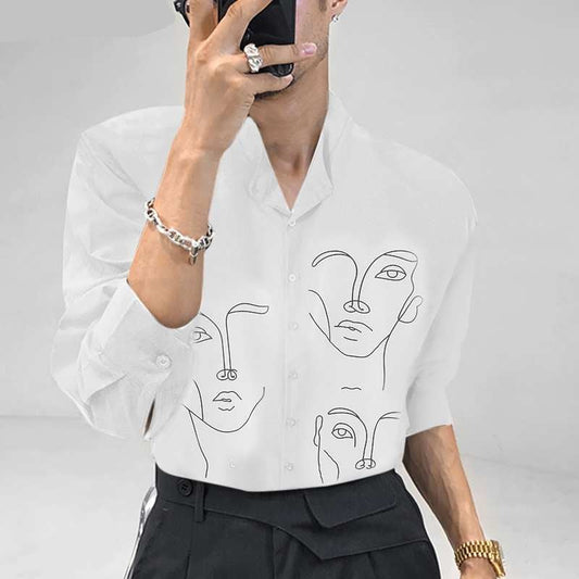 Stylish Simple Style New Men Blouse Casual Party Shows Male Loose Fashionable Face Printing Streetwear Shirts Tops