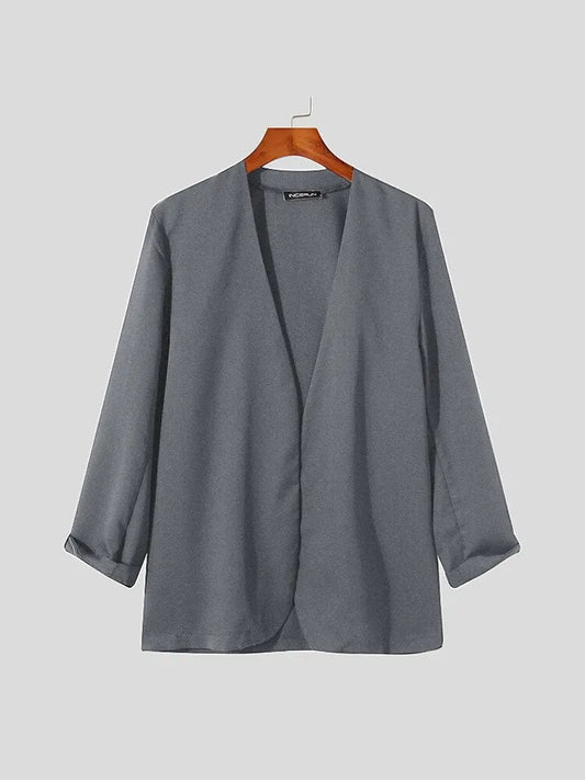 Stylish New Men Blazer Leisure Style Loose Buttons Male All-match Simple Collarless Long-sleeved Suits S-5XL Tops