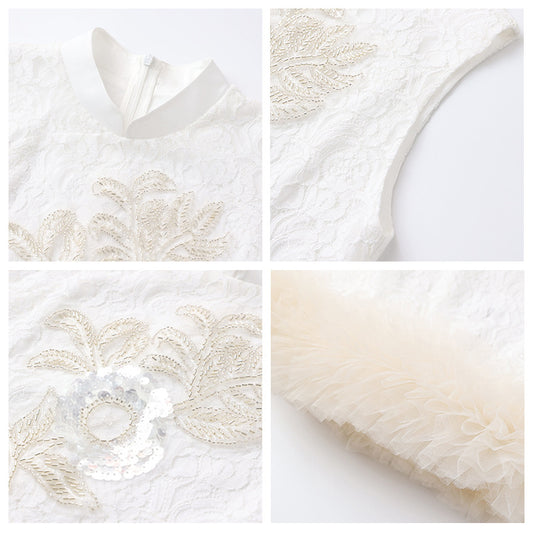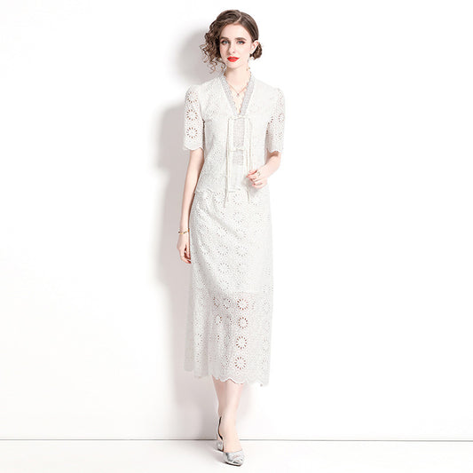 Summer new high-end coffee break skirt lace thin new Chinese improved cheongsam national style set two-piece set