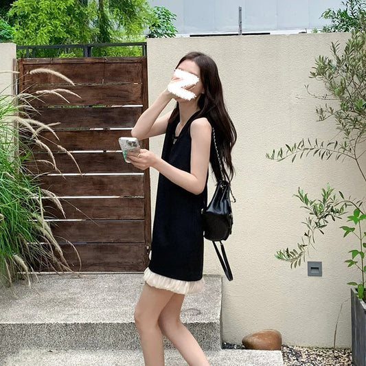 summer new celebrity style solid color ruffle edge sleeveless dress simple light luxury design skirt M5009