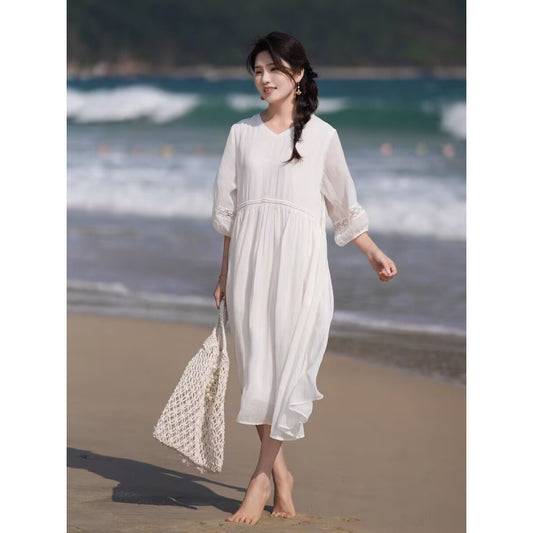 summer new loose large size fairy style dress female temperament literary and retro waist and thin skirt female