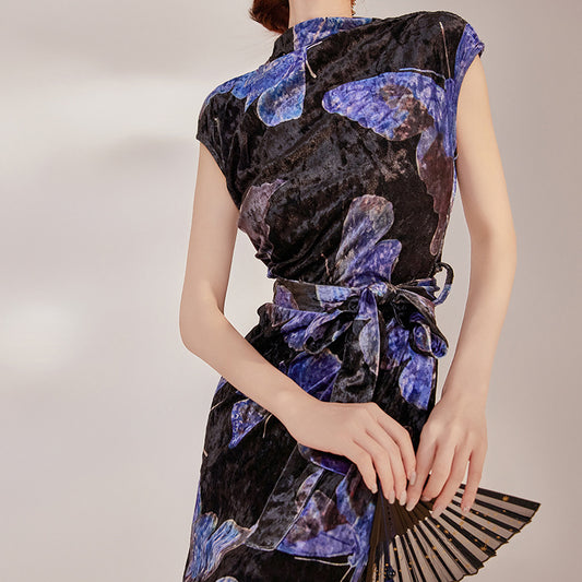 summer national style temperament elegant temperament thin retro slim print butterfly cheongsam dress LZ585