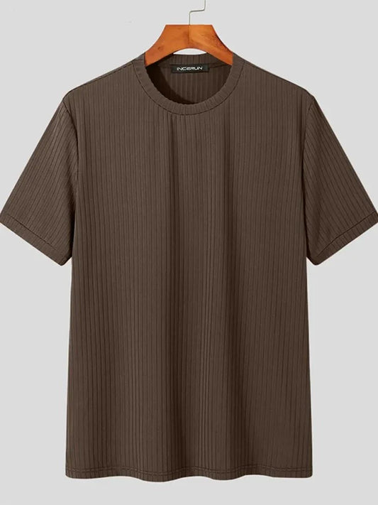 Tops Korean Style New Men's Round Neck Design Niche Camiseta Casual Male Striped Solid Short-sleeved T-shirts S-5XL