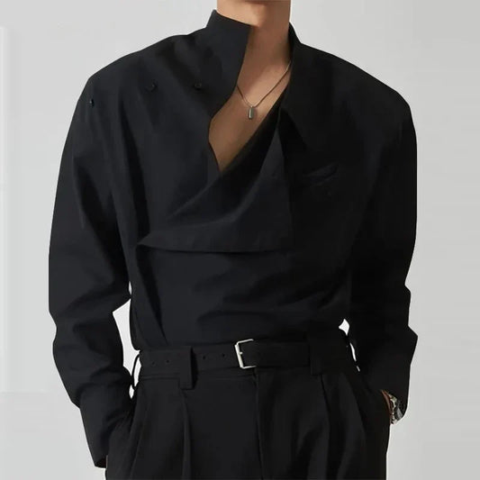 Tops Korean Style New Men's Diagonal Placket Solid Simple All-matcg Blouse Fashion Casual Long Sleeved Shirts S-5XL