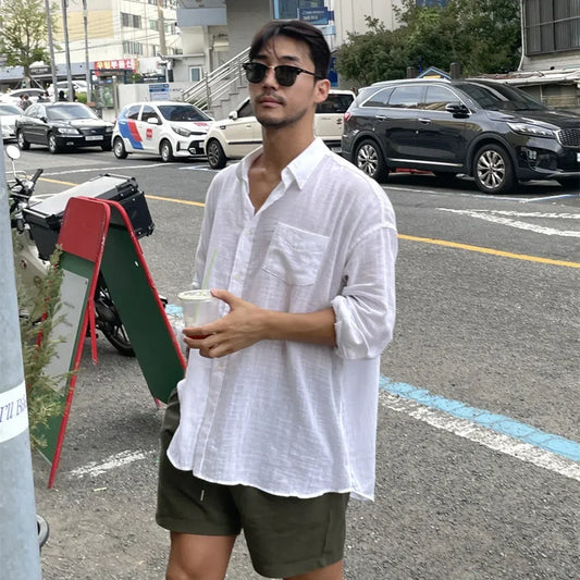 Tops Korean Style Men's Blouse Solid Color Comfortable Stylish Male Casual Streetwear All-match Simple Shirts S-5XL