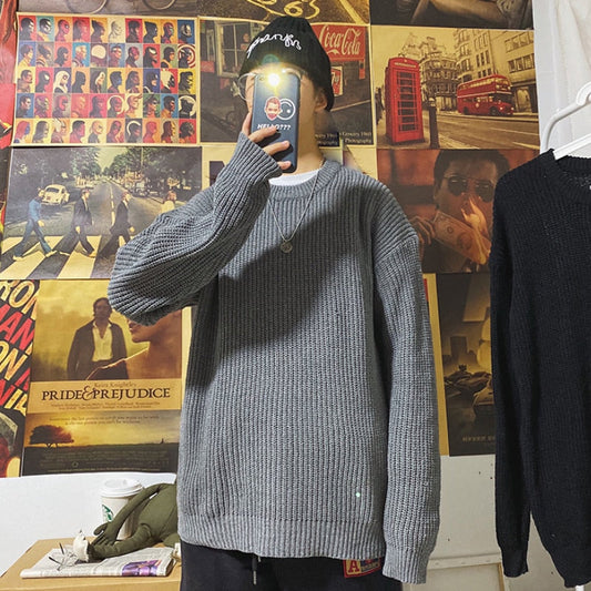 Winter Ribbed Pullovers Men Cozy Loose O-neck Solid Sweaters Couples Knitted Retro Warm Long Sleeve Korean Style Teens Jumpers