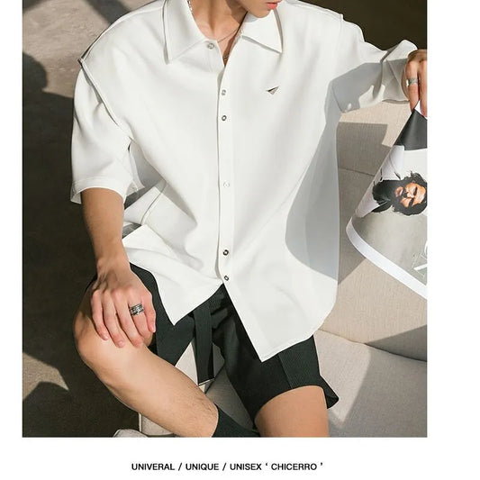 Young Style Solid Shirts Man Premium Temperament Button Short Sleeve Turn-down Collar Loose Office Handsome Men's Clothing