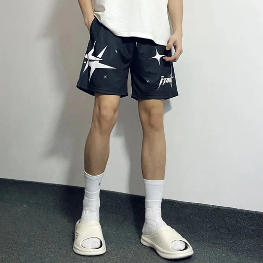 saferido American Y2K Basketball Sports Shorts Men Trend Y2k Street Loose Pentagram Print Knee-length Pants Fitness Breathable Casual Pants