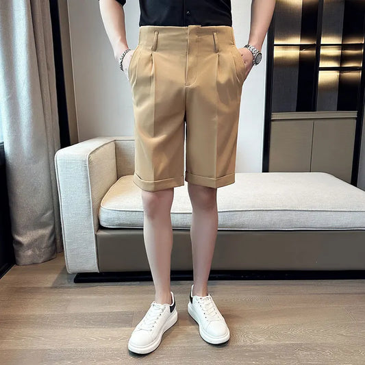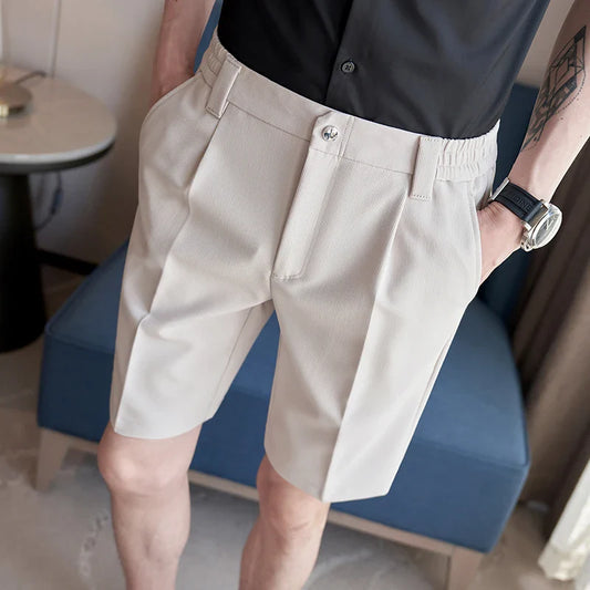 saferido British Style Summer Naples Straight Suit Shorts Men New Slim Fit Business Formal Knee Length Short Pants Hommes Streetwear