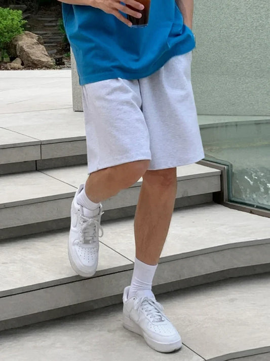 saferido Casual Solid Color Shorts Men's 2024 Summer Men's Clothing Korean Fashion Loose Straight Loose Knee Length Pants