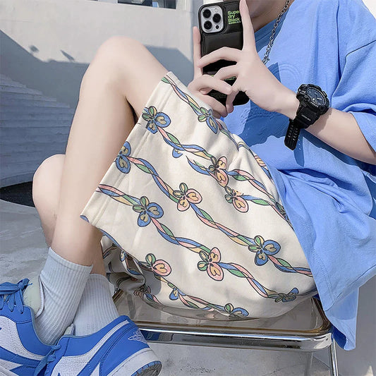 saferido Beach Printed Casual Short Pants Men's Thin Street Hip Hop Trend Fashion Sports Loose Straight Shorts Oversize Summer Clothes