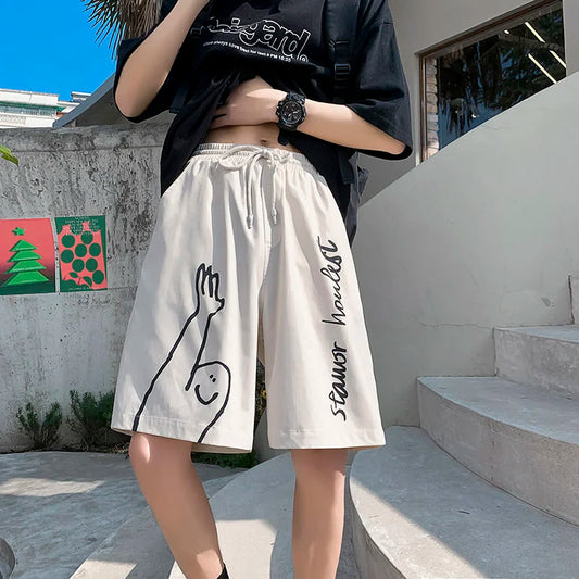 saferido Beach Casual Pants Men's Thin Street Hip-hop Trend Fashion Sports Loose Straight Shorts Oversize Print Graffiti Summer Clothes
