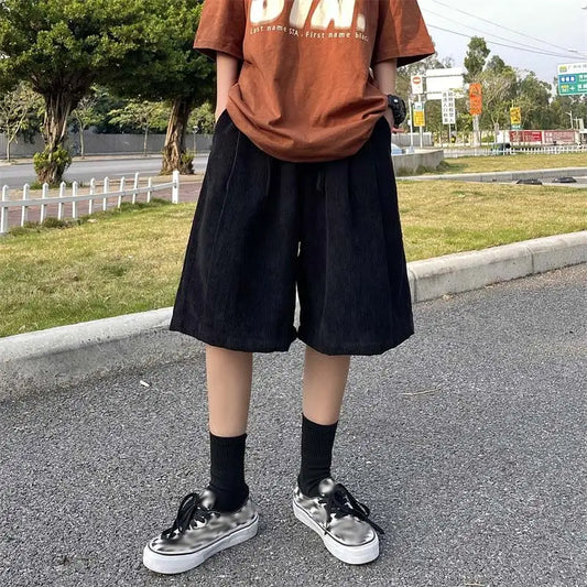 saferido Brown Corduroy Shorts Oversized Baggy Five Point Trousers Summer Korean Fashion Wide Leg Pants Ins Hip Hop Bottoms Men and Women