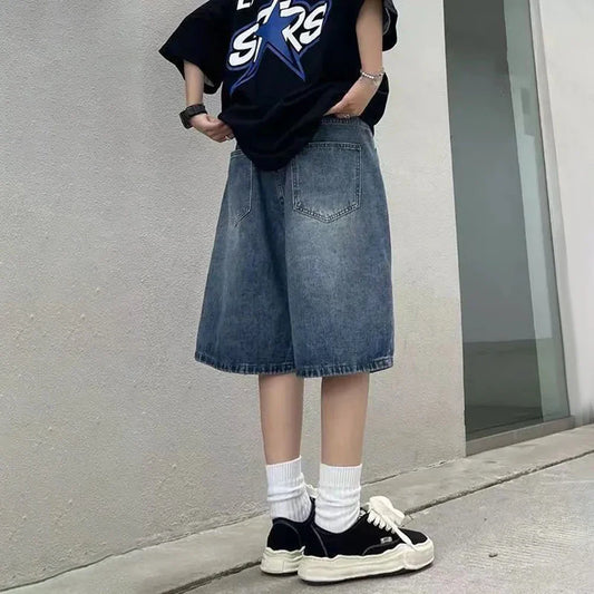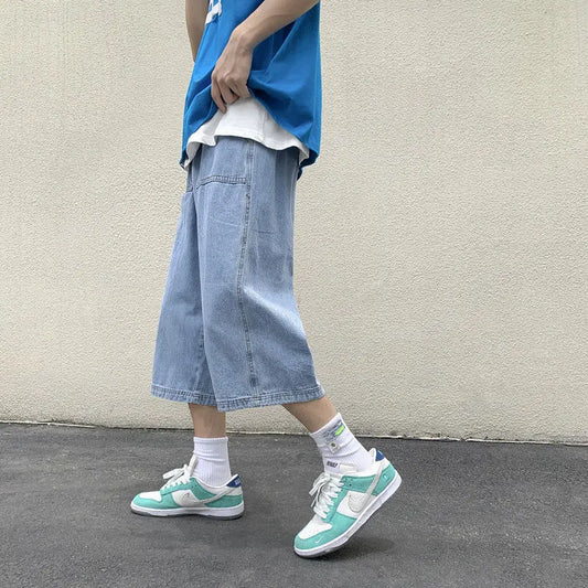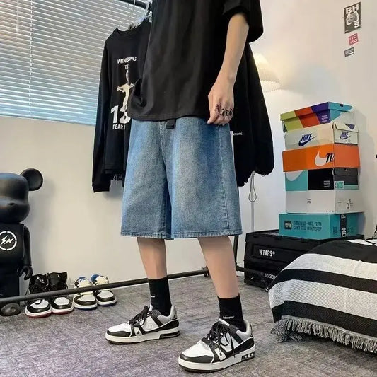 saferido New Summer Fashion Straight Leg Jeans For Men's Korean Light Blue Slim Fit Loose Luxury Brand Design Casual Wide Leg Shorts