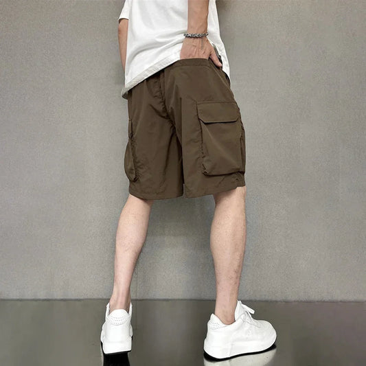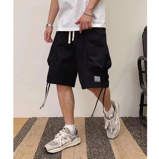 saferido Mens Casual Cargo Shorts Fashion Hip-Hop High Street Solid Color American Loose Spring And Summer New Style Half Trousers