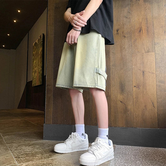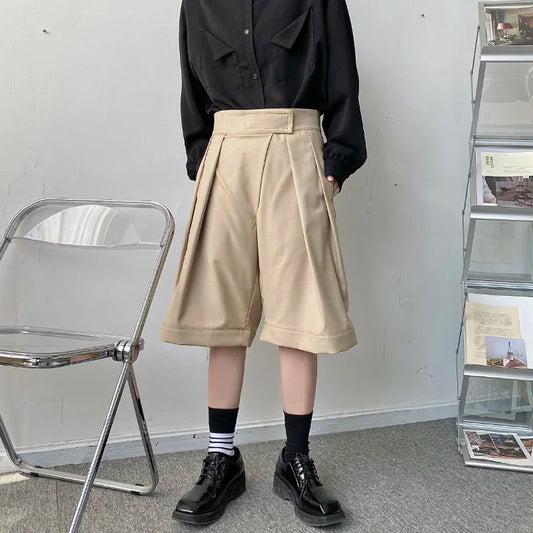 saferido New Niche Design Pasted High Waist Khaki Causal Wide Leg Shorts Summer Korean Trend Men's Knee Length Pants