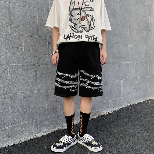 saferido Mens Casual Shorts Summer Hip-Hop Street Harajuku Style Personalized Print Simple Sports Shorts Boys Loose Straight Pants