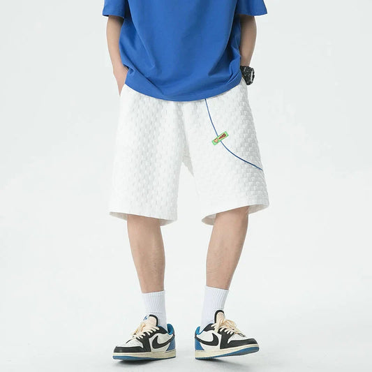 saferido Solid Plaid Casual Shorts Oversize Street Trend Fashion Sports Straight Wide Leg Pants Summer Tightening Short Pants for Men