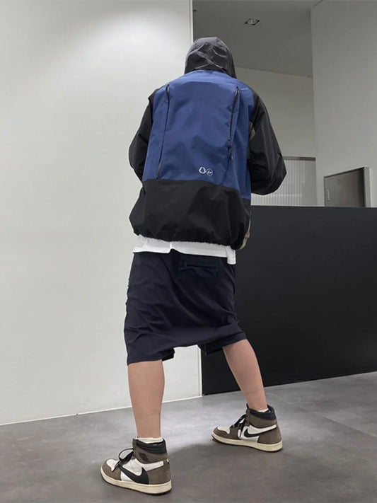 saferido Sports Casual Shorts Oversize New Street Stitching Hit Color Straight Wide Leg Pants Trendy Fashion Short Pants for Mens Summer