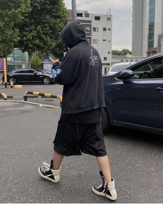 saferido Oversize Casual Shorts Men's Thin Street Trend Hip-hop Drawstring Sports Five Points Loose Straight Pants Printed Summer Clothes
