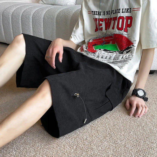 saferido Solid Color Loose Shorts Summer Big Pocket Sports Straight Wide Leg Casual Pants Oversize Fashion Thin 5-points Sweatpants Men