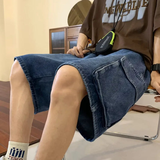 saferido Summer Men Denim Short Streetwear Vintage Korean Harajuku Pocket Jeans Shorts Hip Hop Cargo Pants Oversized Bottoms Male Clothes