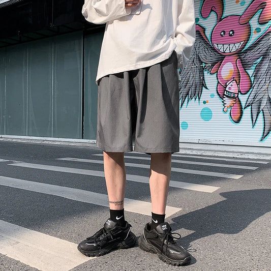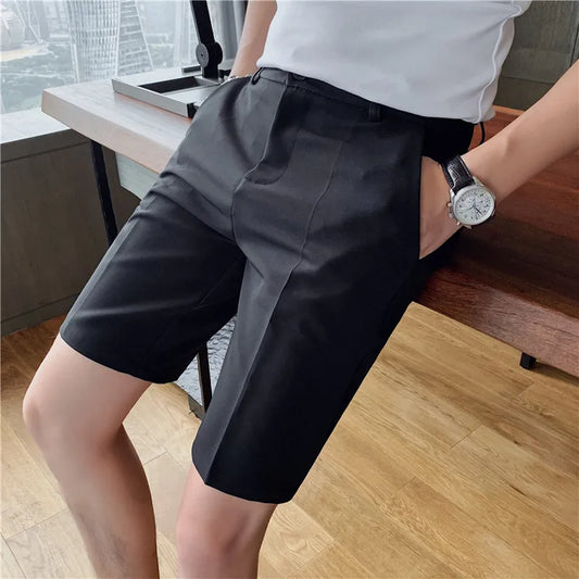 saferido Summer Suit Shorts Men Fashion Society Mens Dress Shorts Korean Loose Grey Black Casual Shorts Mens Office Formal Shorts M-2XL