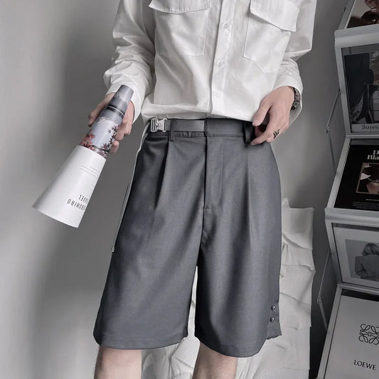 saferido Summer Suit Shorts Men Fashion Social Mens Dress Shorts Korean Loose Business Casual Shorts Mens Grey Black Office Formal Shorts