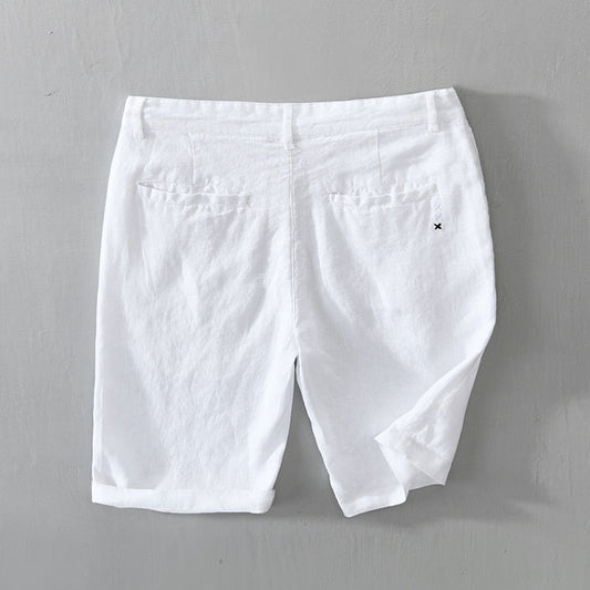 Pure Linen Shorts for Men Summer New Fashion Solid White Loose Holiday Shorts Man Casual Plus Size Button Fly Short Pants
