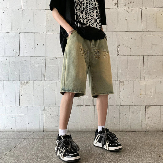 saferido -shop boy outfits Vintage Washed Jeans Men's Trendy All-Match Straight Loose Casual Shorts Manufacturer