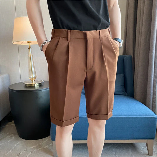 saferido British Style Summer Suit Shorts Men Clothing Straight Business Formal Wear Slim Fit Casual Short Homme Knee Length Quality