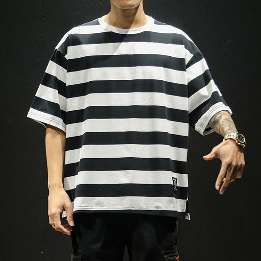 New Fashion Men's T Shirt Summer O-Neck Short Sleeve Striped T-Shirt Mens Oversized Casual Hip Hop Top Tees Streetwears 5XL