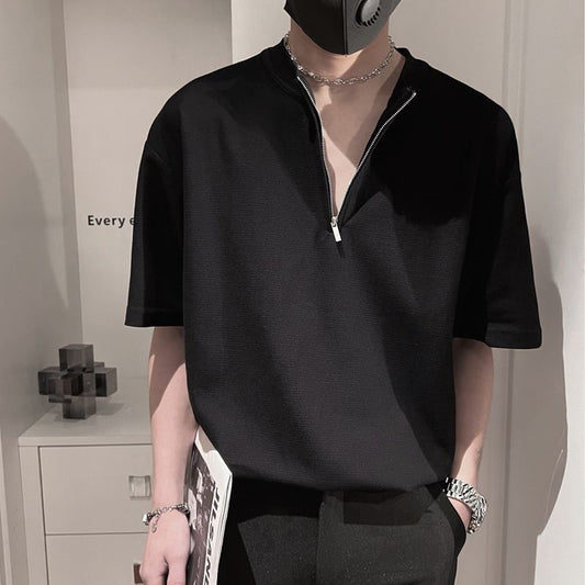 New Golf Stand Collar Polo Shirt for Men Senior Half Sleeve Zipper Black Short Sleeve T-shirt Men Clothing Summer Fashion